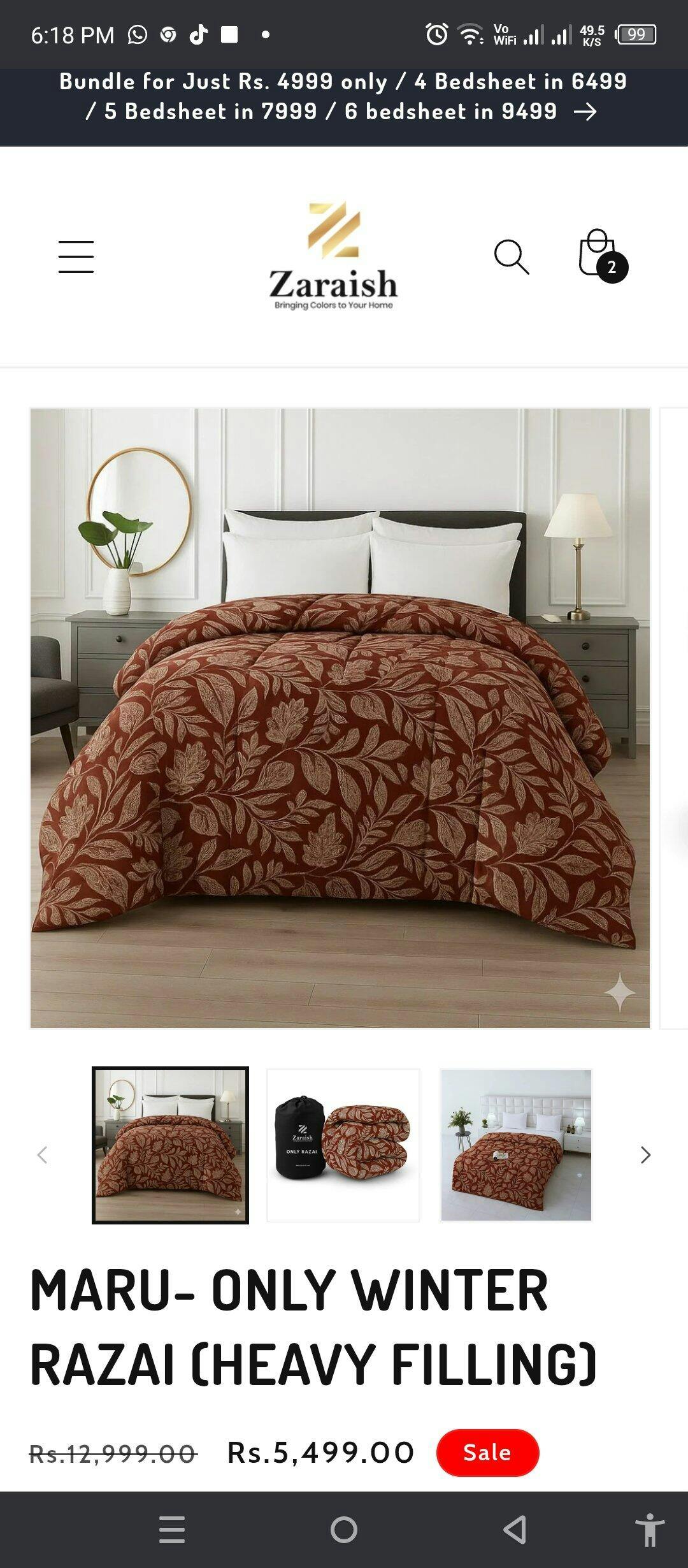 1x King Size filled Reversible RAZAI Dimensions: 90 x 98 inches